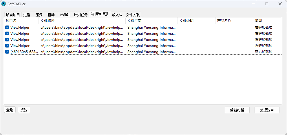 c:userslbinslappdatallocalldeskright\viewhelper.d11 - 点击处理选中就可以删除这个加载项