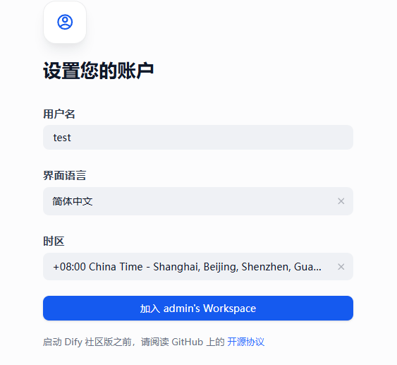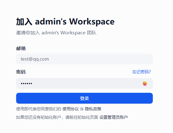 6、设置完毕后,点击加入即可使用创建的账号登录到dify工作界面