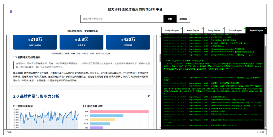 动态模板库:系统预置6种报告模板(社会热点、品牌监测、政策分析等),LLM自动选择最匹配的模板