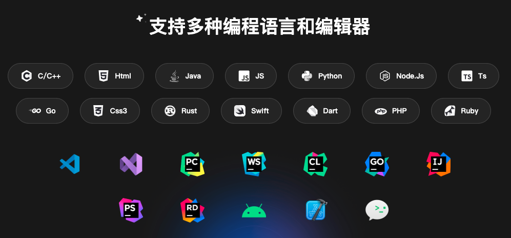 CodeBuddy 现已支持主流的编程语言和编辑器,无需改变现有开发习惯即可无缝接入。