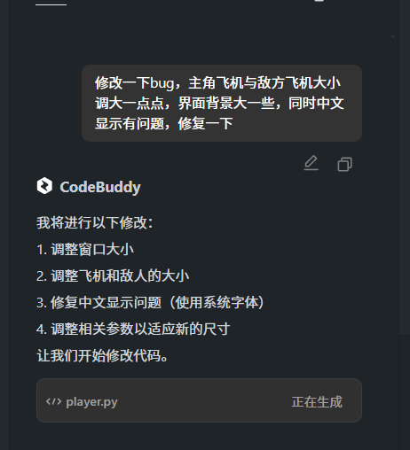 正如我们通过 CodeBuddy 开发“飞机大战”的全过程所看到的那样,从初始需求描述、代码生成、图形资源辅助、调试建议到最终运行效果的呈现,CodeBuddy 都展现出了强大的集成能力与实用性。结合腾讯混元与 DeepSeek 最新模型,CodeBuddy 可提供专业的重构建议:不仅帮你写出能跑的代码,更能写出「优雅、可维护、可持续迭代」的好代码。正如其名 —— Code(代码) + Buddy