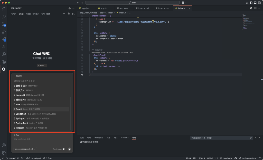 CodeBuddy Chat模式下还集成 国内开发者常用知识库系统 :