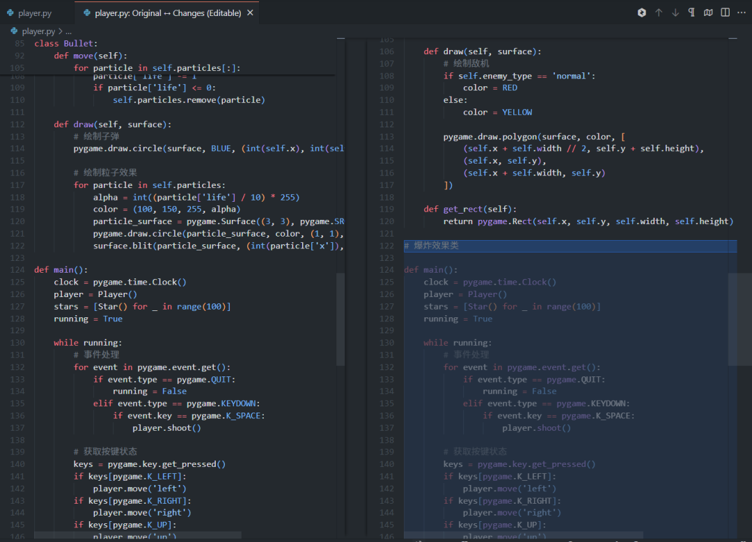 在player.py文件里面写一个飞机大战的代码,背景星空,发射子弹,效果需要酷炫。