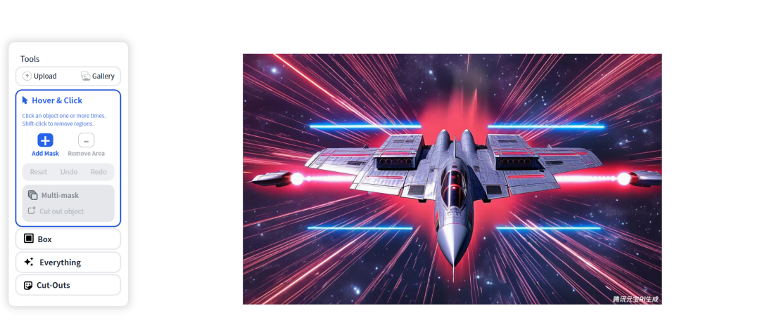 我们这里对敌方飞机与主角飞机的绘制使用的是腾讯元宝的AI绘图,在使用SAM进行抠图,作为游戏内容中的player.png图片: