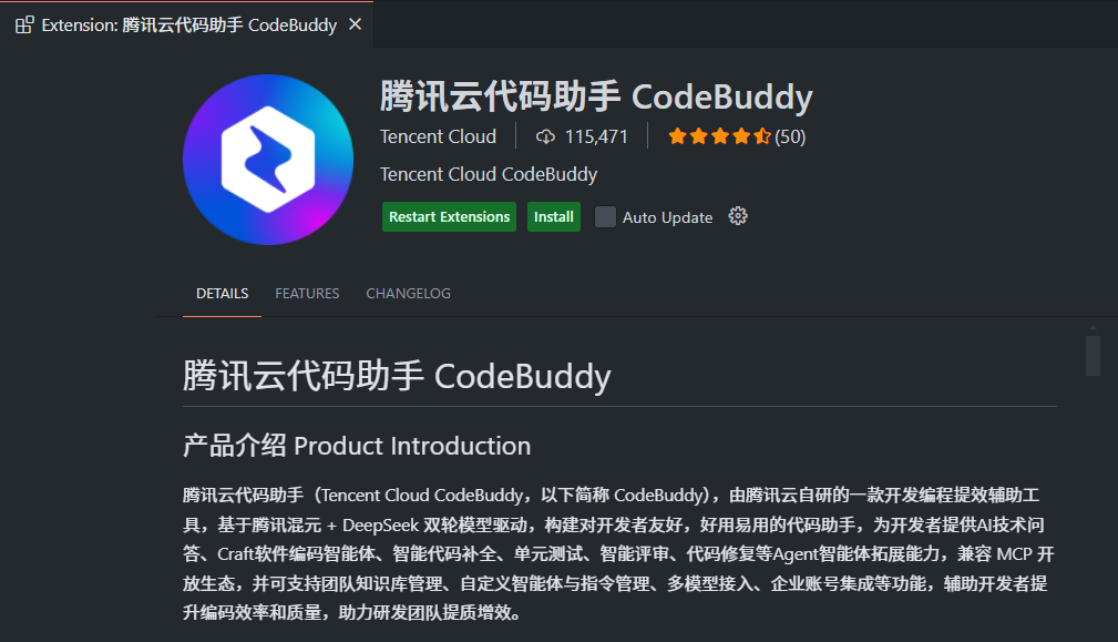 VsCode编辑器的插件商店中,搜索腾讯云代码助手CodeBuddy,点击install安装即可。