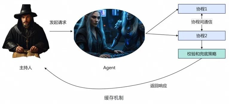 def llm_caller_with_buffer(self, prompt, req: AgentReq, check_pattern: str = None, random_list: list = None):# init bufferresponse_buffer = {}ifnot self.memory.has_variable('response_buffer'):self.memory.set_variable('response_buffer', response_buffer)else:response_buffer = self.memory.load_variable('response_buffer')buffer_key = self.get_buffer_key(req)res = Noneis_out_of_time = Falseif buffer_key in response_buffer.keys(): # 有缓存is_out_of_time = True# 等待上一轮结果end_time = datetime.now() + timedelta(seconds=75)while datetime.now() < end_time:buffer_value = response_buffer[buffer_key]if buffer_value != '<WAIT>':is_out_of_time = False # 主动跳出if check_pattern:if re.match(check_pattern, response_buffer[buffer_key]):res = buffer_valueelse:breakelse: # 如果不检查patternres = buffer_valueif is_out_of_time and (random_list is not None):# 两次均超时res = random.choice(random_list)logger.info(f'llm out of time, random choice: {res}')return resif res is not None:logger.info(f'llm call use buffer: {res}.')return reselse:# 第一次执行response_buffer[buffer_key] = '<WAIT>' # 占位标记系统已经启动res = self.llm_caller(prompt)response_buffer[buffer_key] = res # 执行后更新结果return res