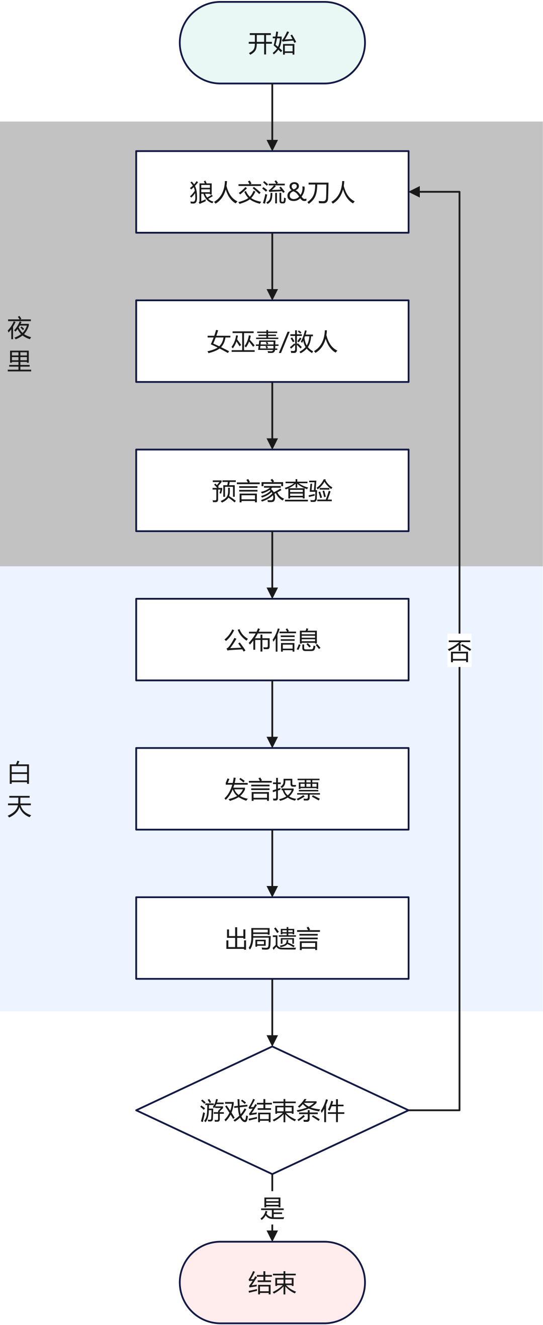游戏流程核心为夜晚与白天交替。夜晚,狼人可内部商讨并指定击杀目标;预言家查验一人身份;女巫获知被刀者并选择使用解药或毒药。