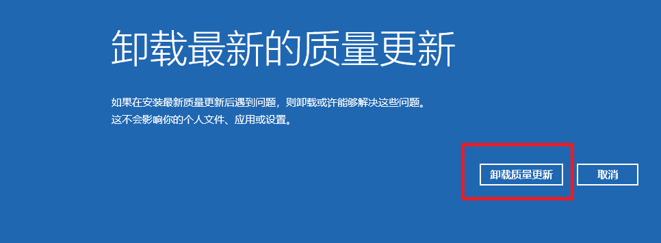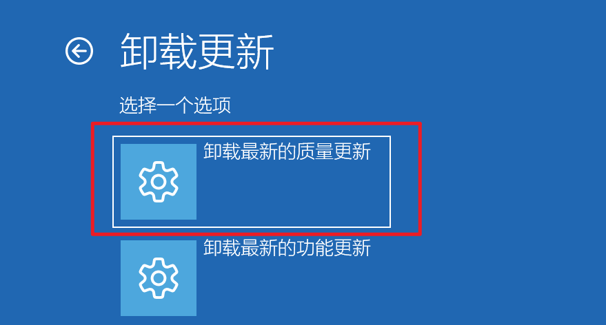 按开机键,显示logo的时候长按开机键关机,然后在按开机键,这个操作3次以上,进入蓝色的自动恢复界面,点击高级选项--疑难解答--高级选项--卸载更新--卸载质量更新,然后关闭电脑重新开机试试;