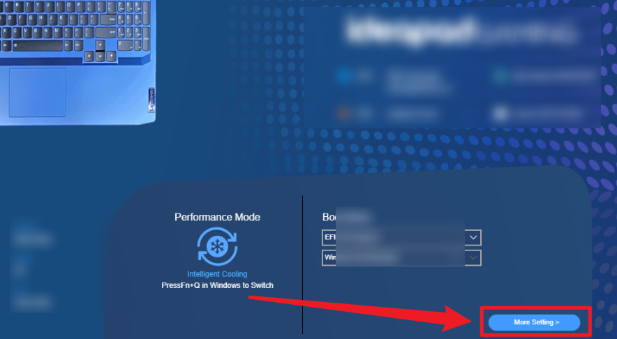 点击右下角“More Setting”,进入更多设置,然后按F9选择yes回车,在按F10选择yes回车,这是尝试恢复bios默认,然后电脑在正常开机看看是否正常即可;
