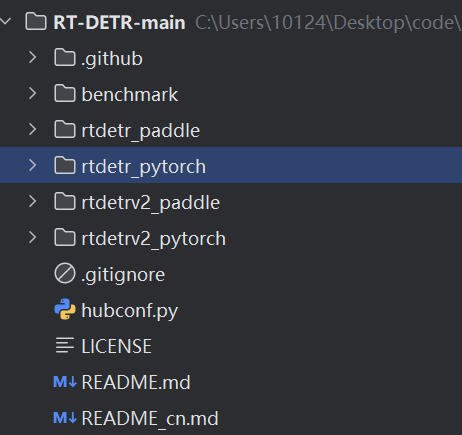 ,我们主要用rtdetr_pytorch;其中rtdetr_paddle是基于百度的架构Paddle构建的。
