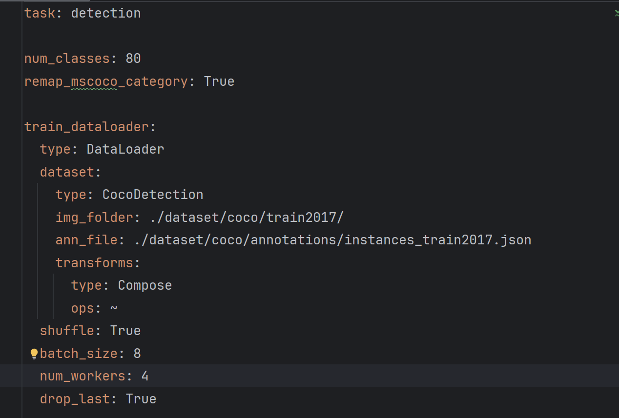 下载并解压到configs/dataset;之后我们修改源码给的yaml配置文件:把类型改为14,remap=Flase,修改文件位置,帮图片(img)和标注文件(ann)放入对应位置。batch_size根据内存大小适当修改,num_workers使用Windows 系统则设为0。