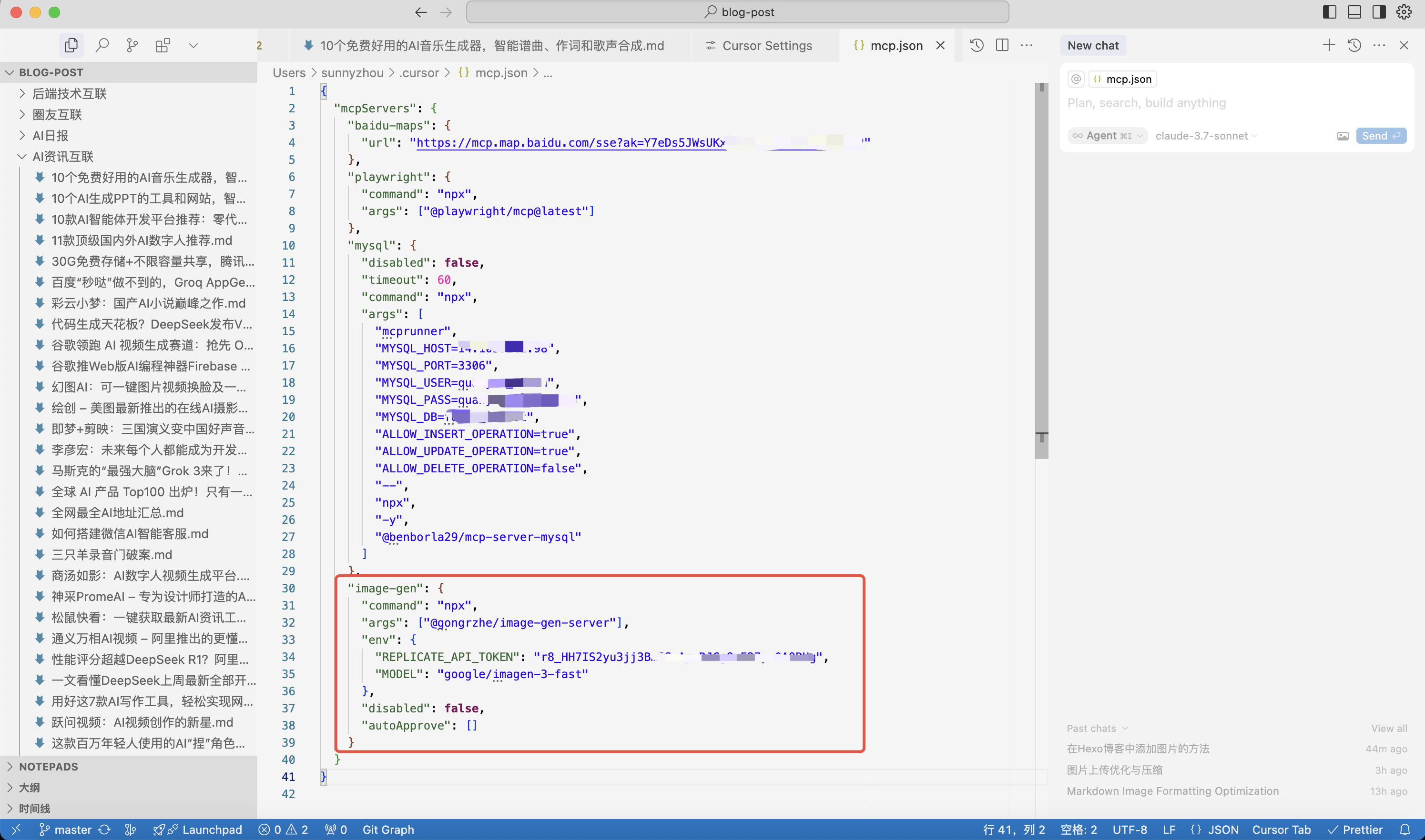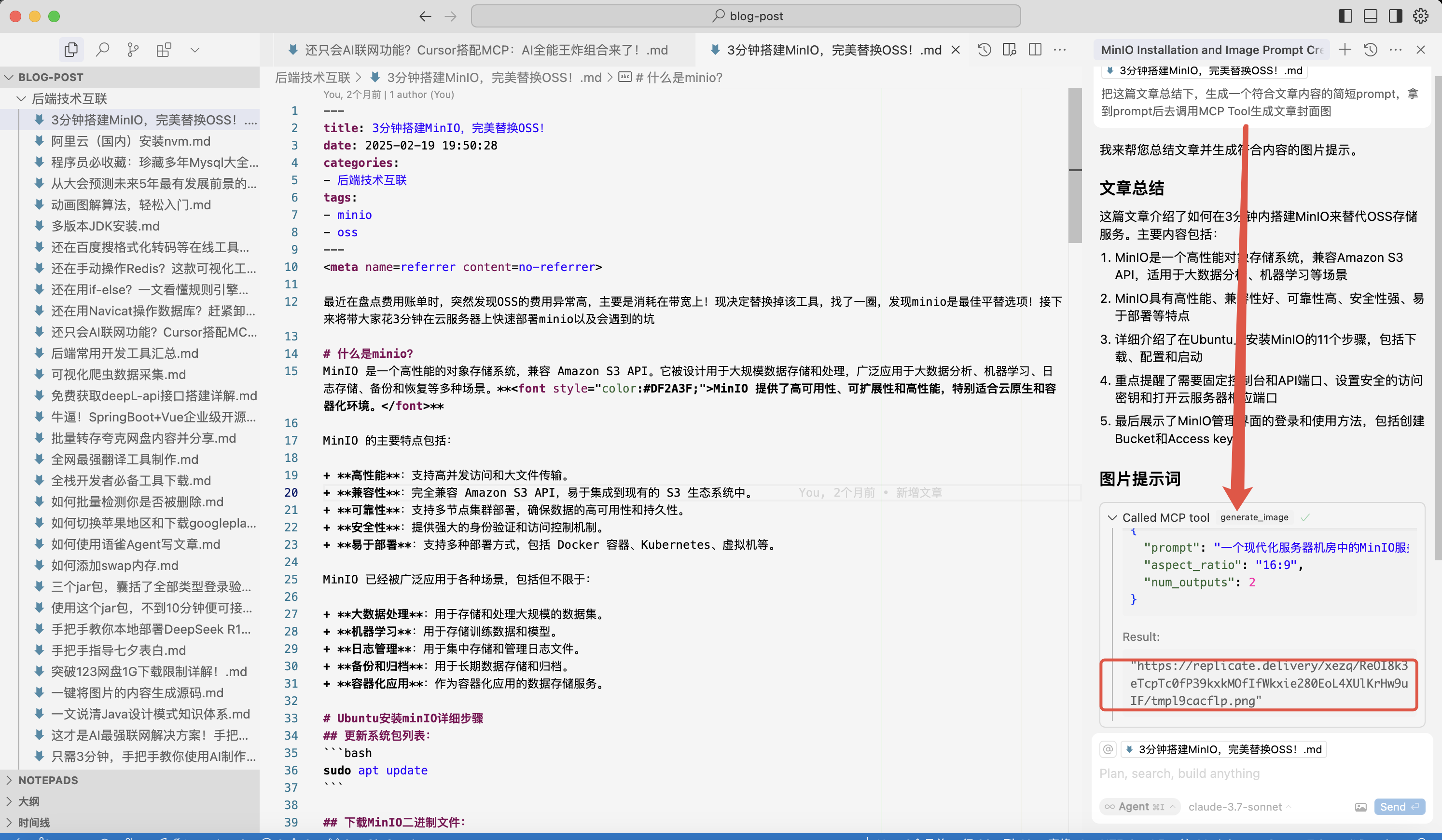 - 3、利用Cursor的AI功能把文章提取出图片的描述提示词,并利用MCP功能生成配图