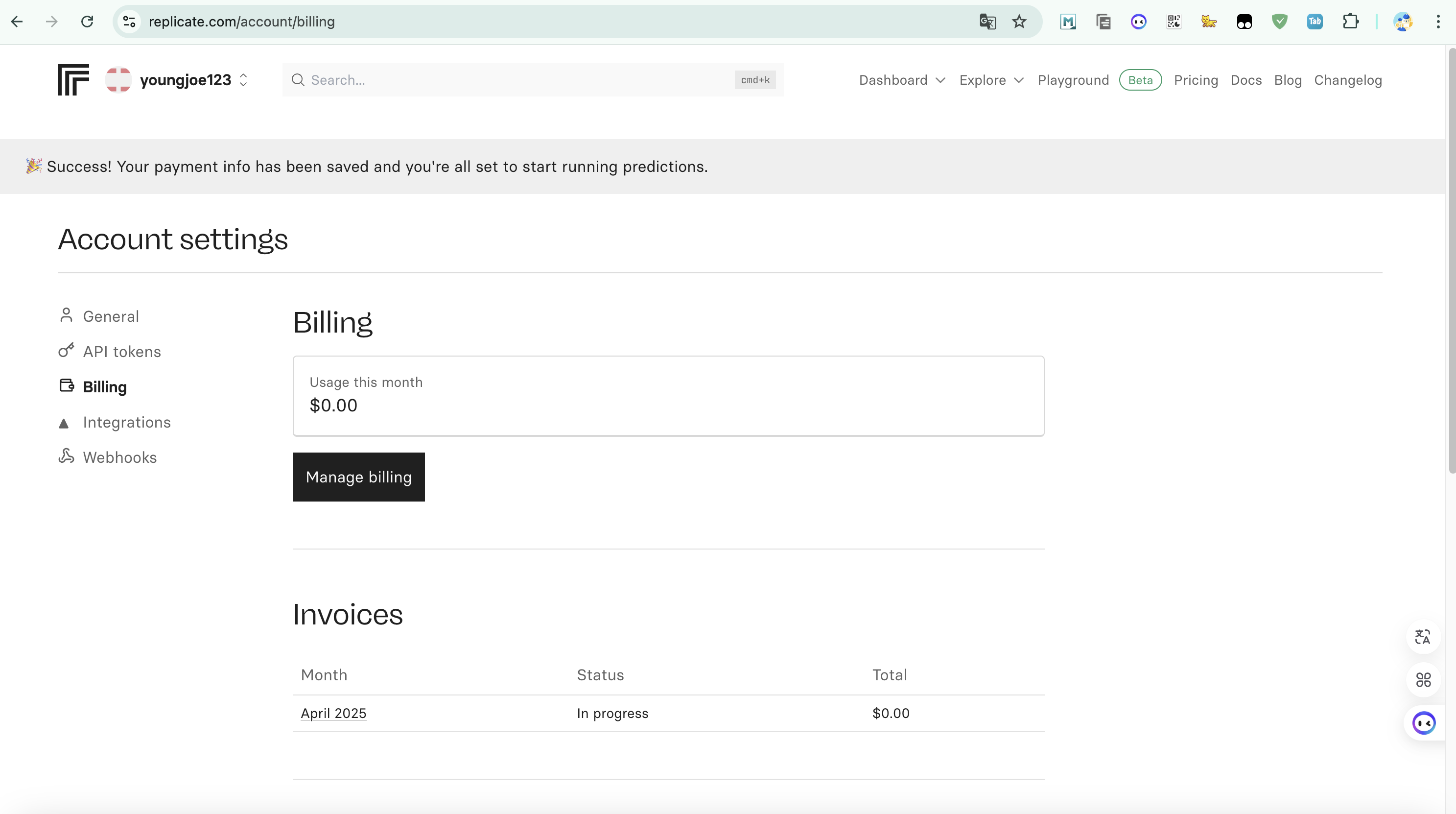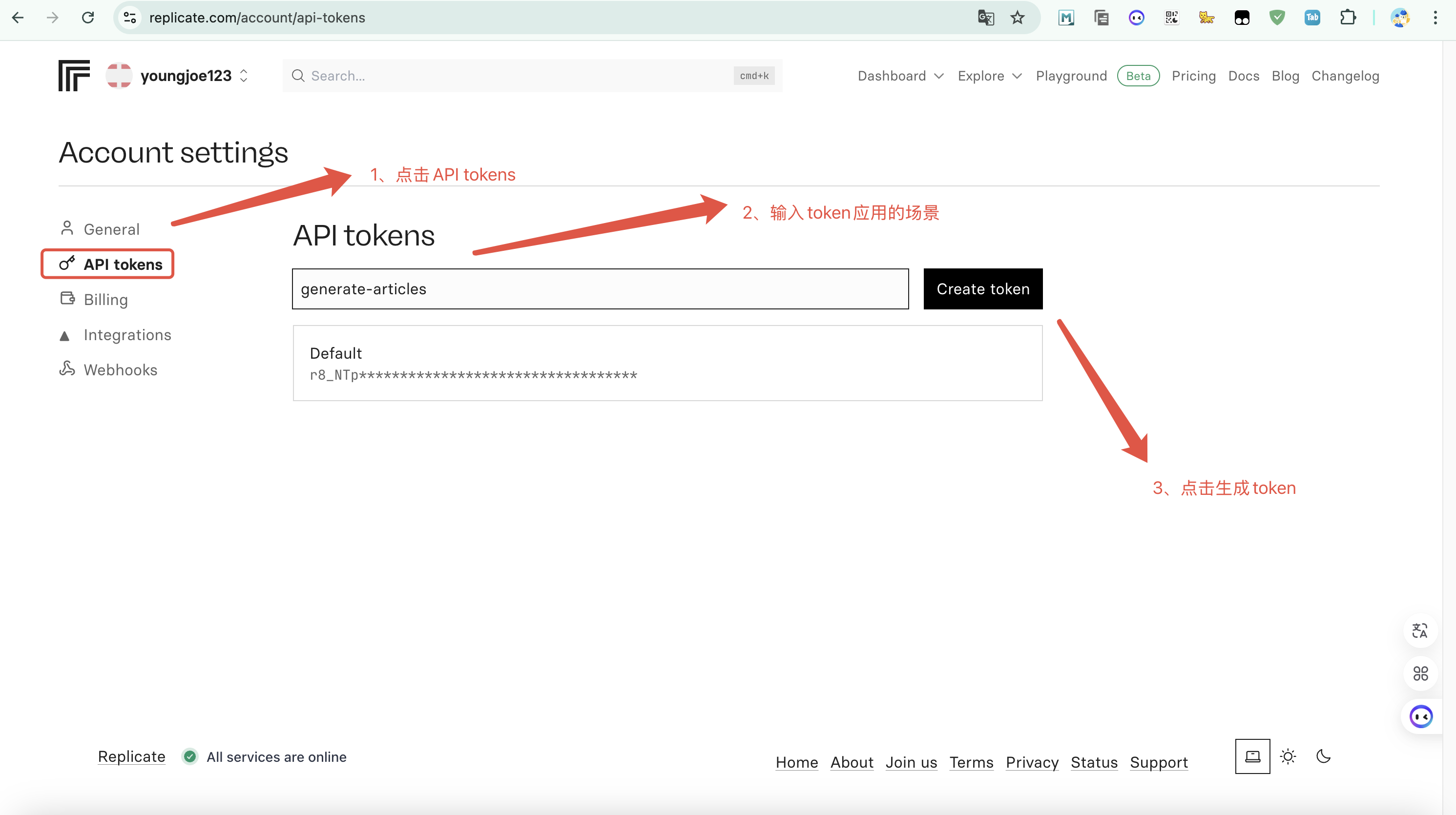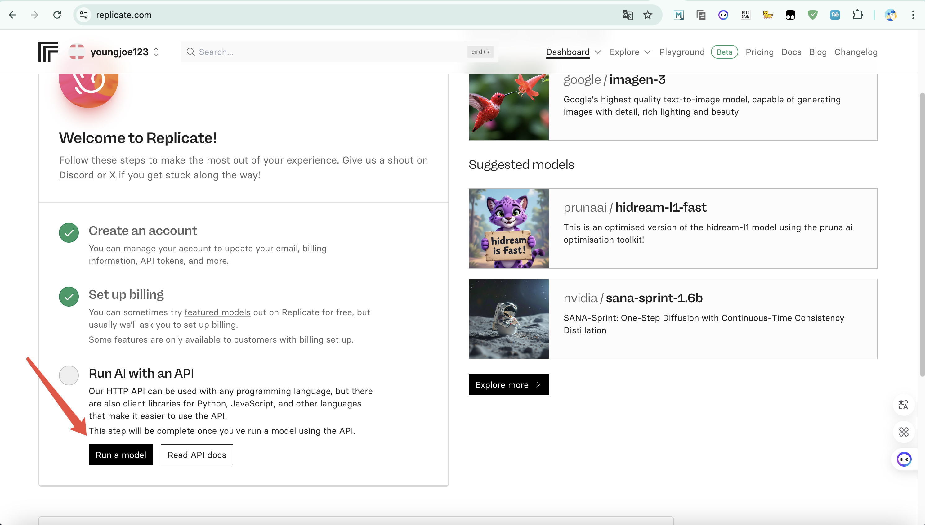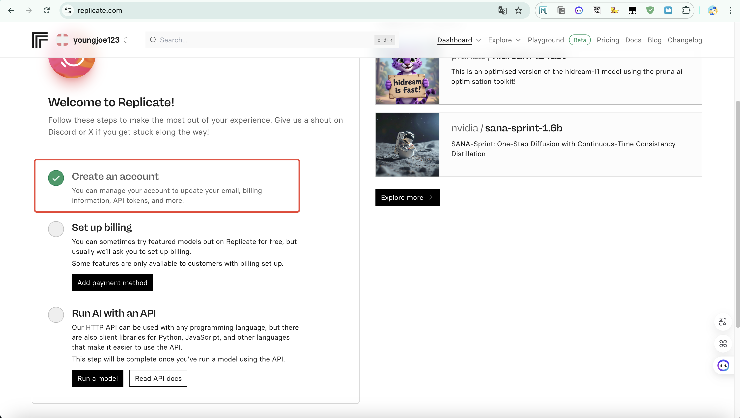 因为使用了replicate服务,所有第一步我们先要去创建replicate账号