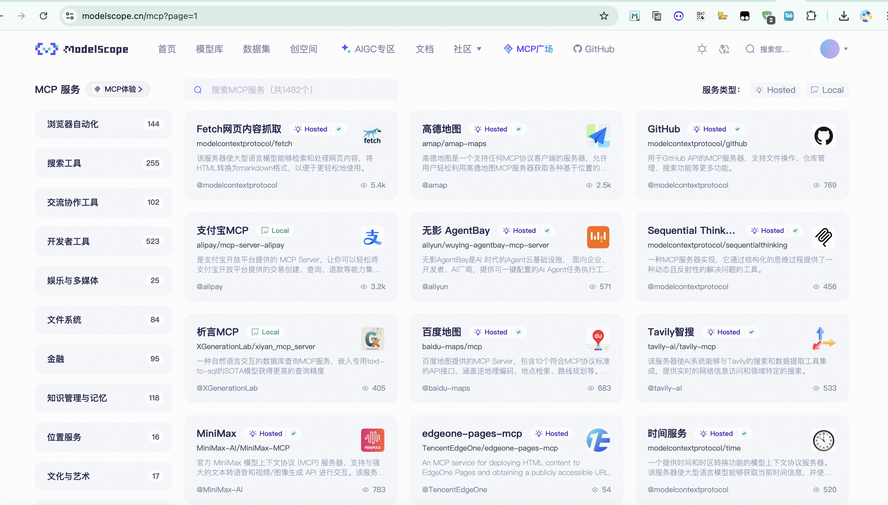 - 阿里云旗下的AI开源社区魔搭(ModelScope)新推出的MCP广场,上架千余款热门MCP服务,独家首发支付宝、MiniMax等全新MCP服务