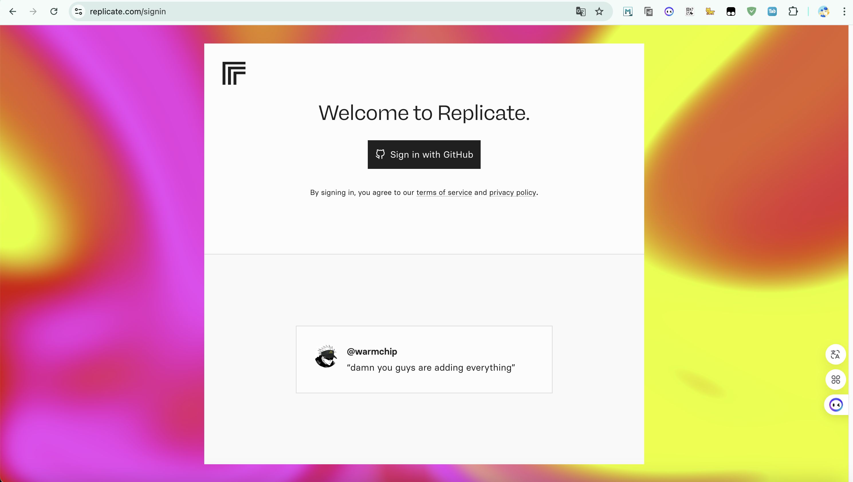 登录官网:Replicate - Run AI with an API,点击Sign in,可以直接使用Github快捷登录
