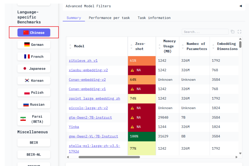 - BGE(BAAI General Embedding):智源研究院研发,专为中文优化(如bge-large-zh),在中文MTEB榜单排名前列。