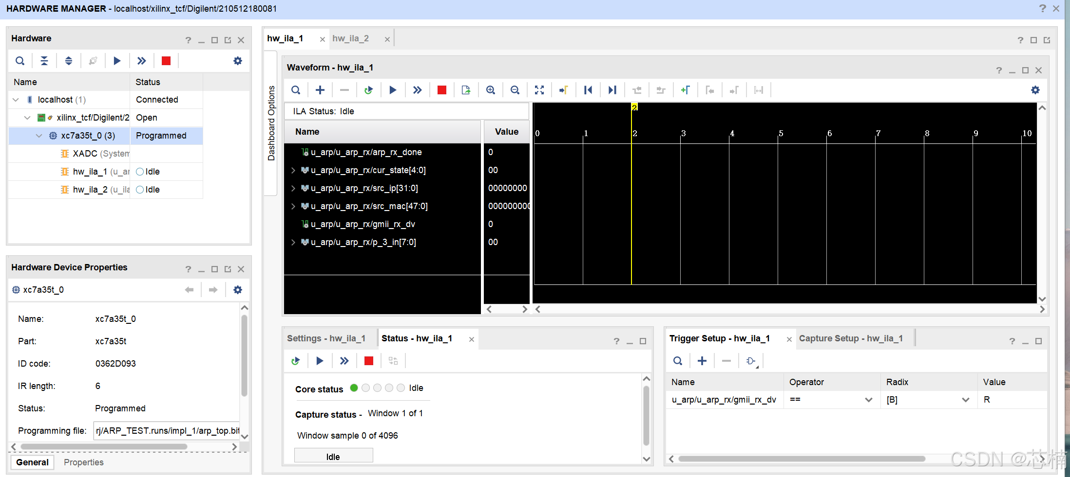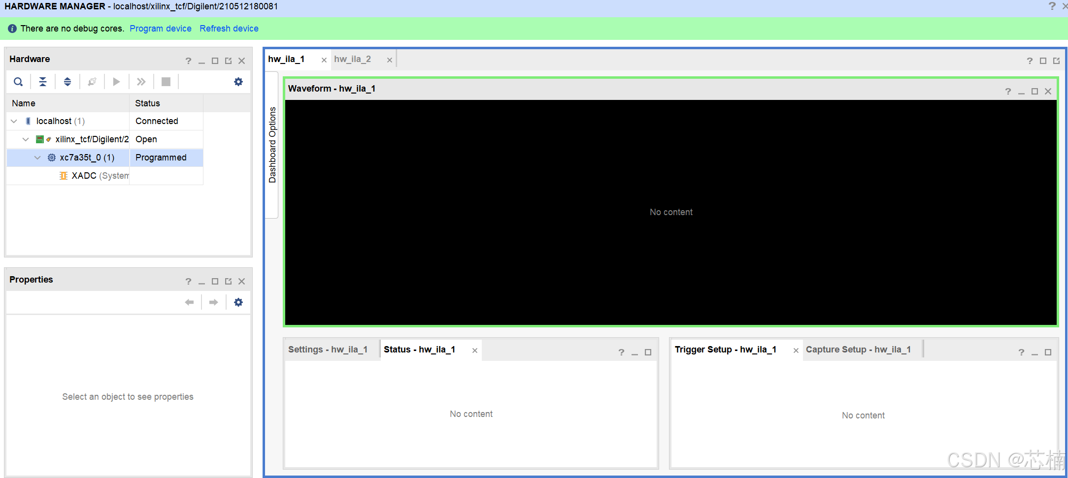 如果你遇到这种情况:在线下载后,ILA的调试界面没有反应或者没有那个界面出现。
