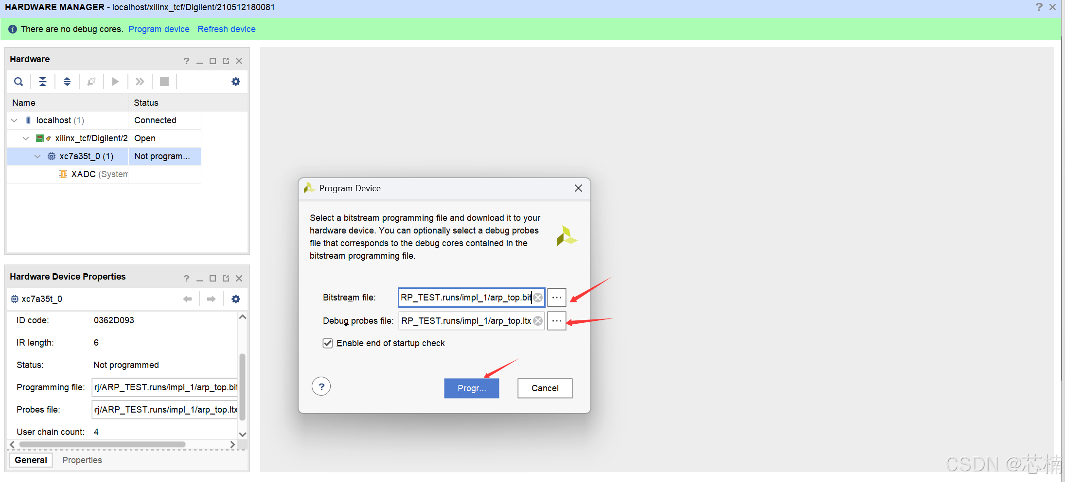 关于vivado中下载程序后用ILA逻辑分析仪没有反应或者ILA的debug界面不弹出的解决方法