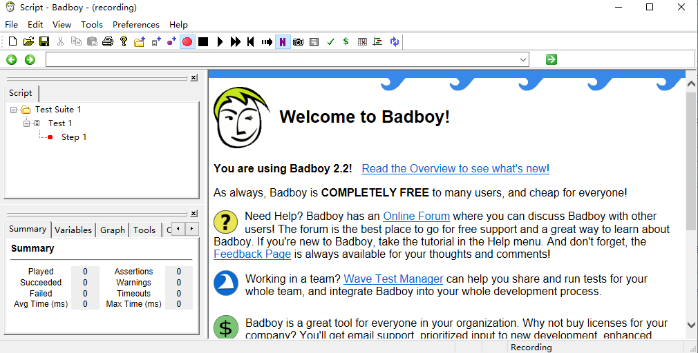 启动Badboy。看他的界面。