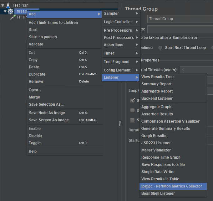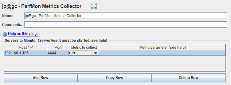 创建一个测试项目,添加一个jp@gc……的监听器,监听服务端的性能指标。