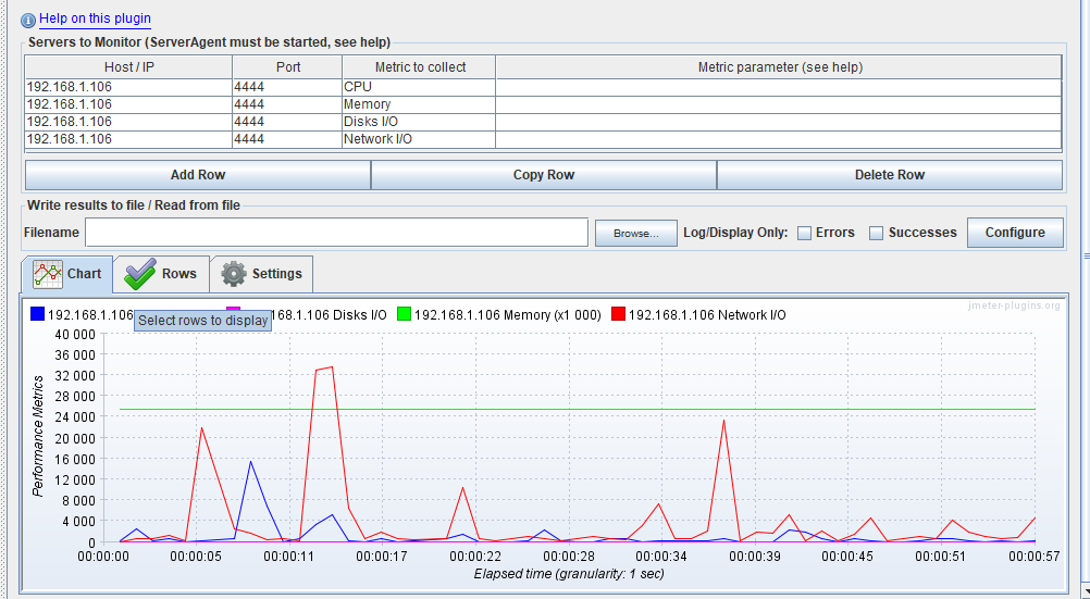 如果需要监控更过的性能数据,就在 Add row中添加其他监控指标。