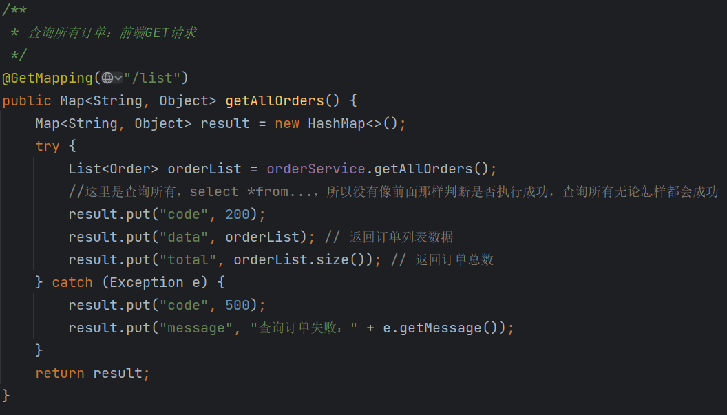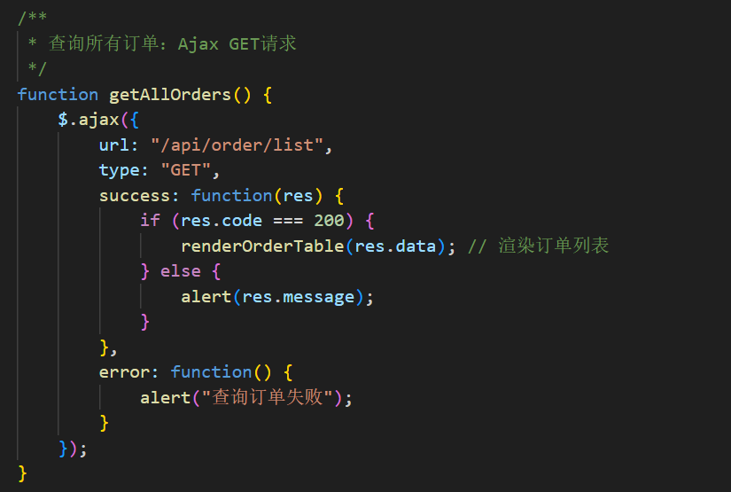 2.查询所有订单:前端GET请求