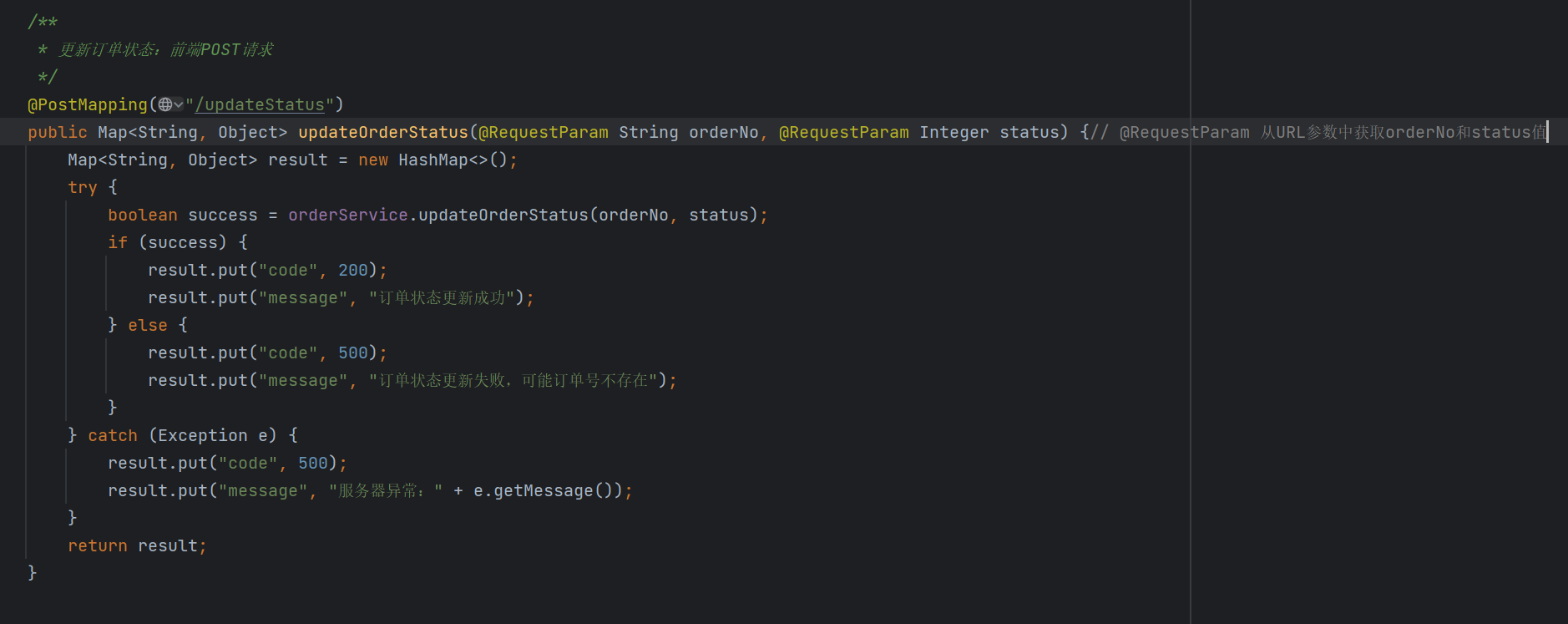 方法体和mapping我这里就不多说,这里需要补充的一点就是@RequestParam这个注解,这个注解的作用就是可以从url读取参数值,然后把该参数转换为我们想要的数据类型
