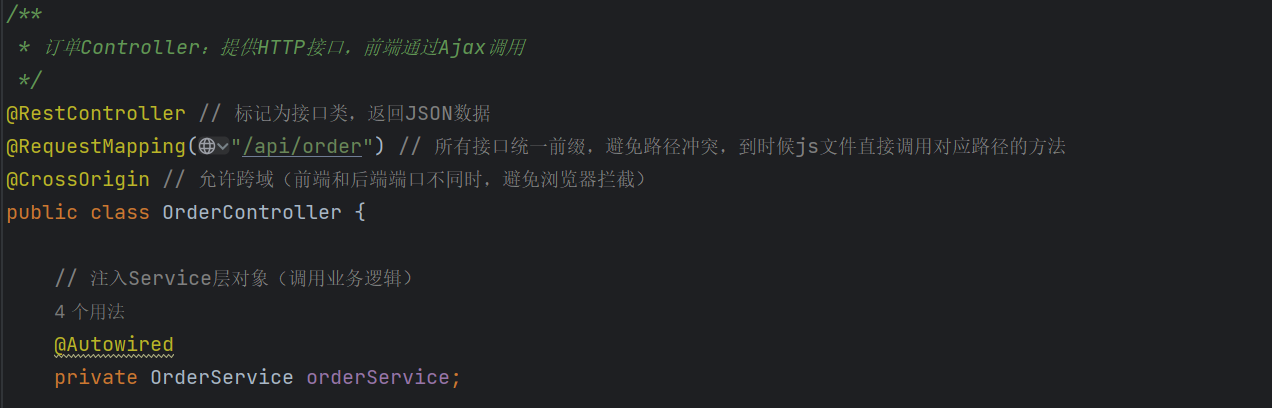 1.@RequestController注解:作用是标记了这个类是“后端业务接口类”返回的数据会自动变成前端所需要的json数据