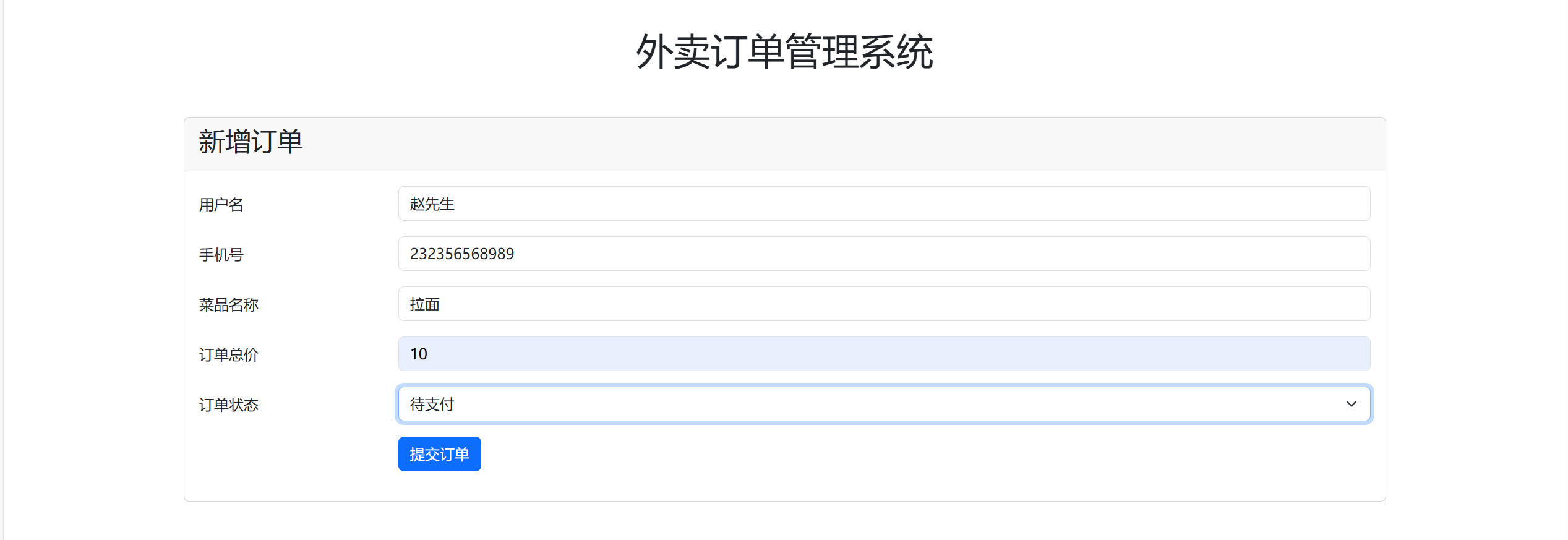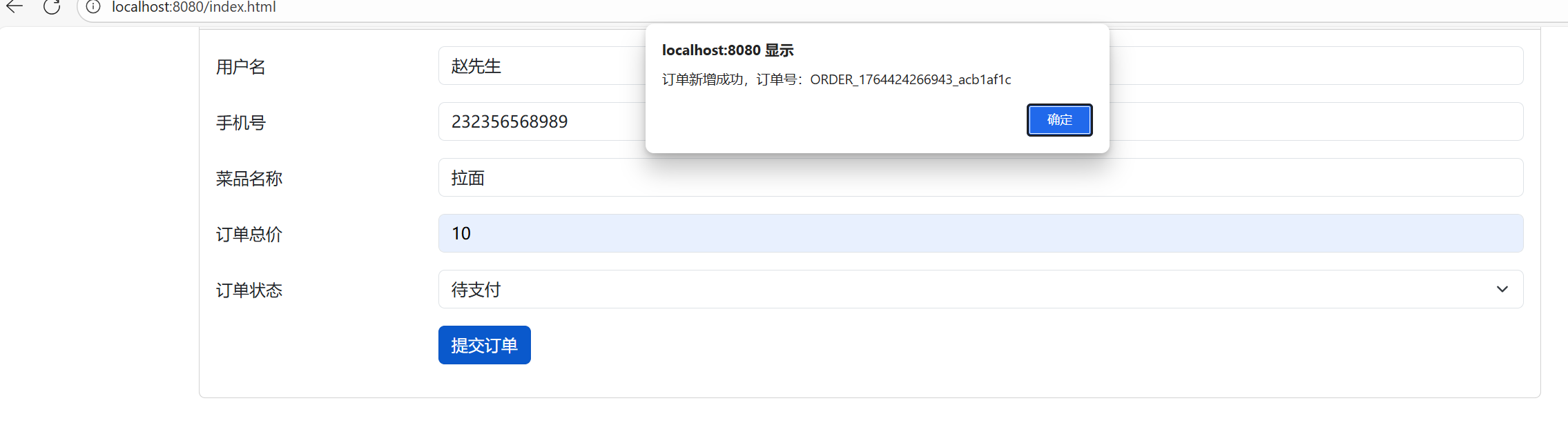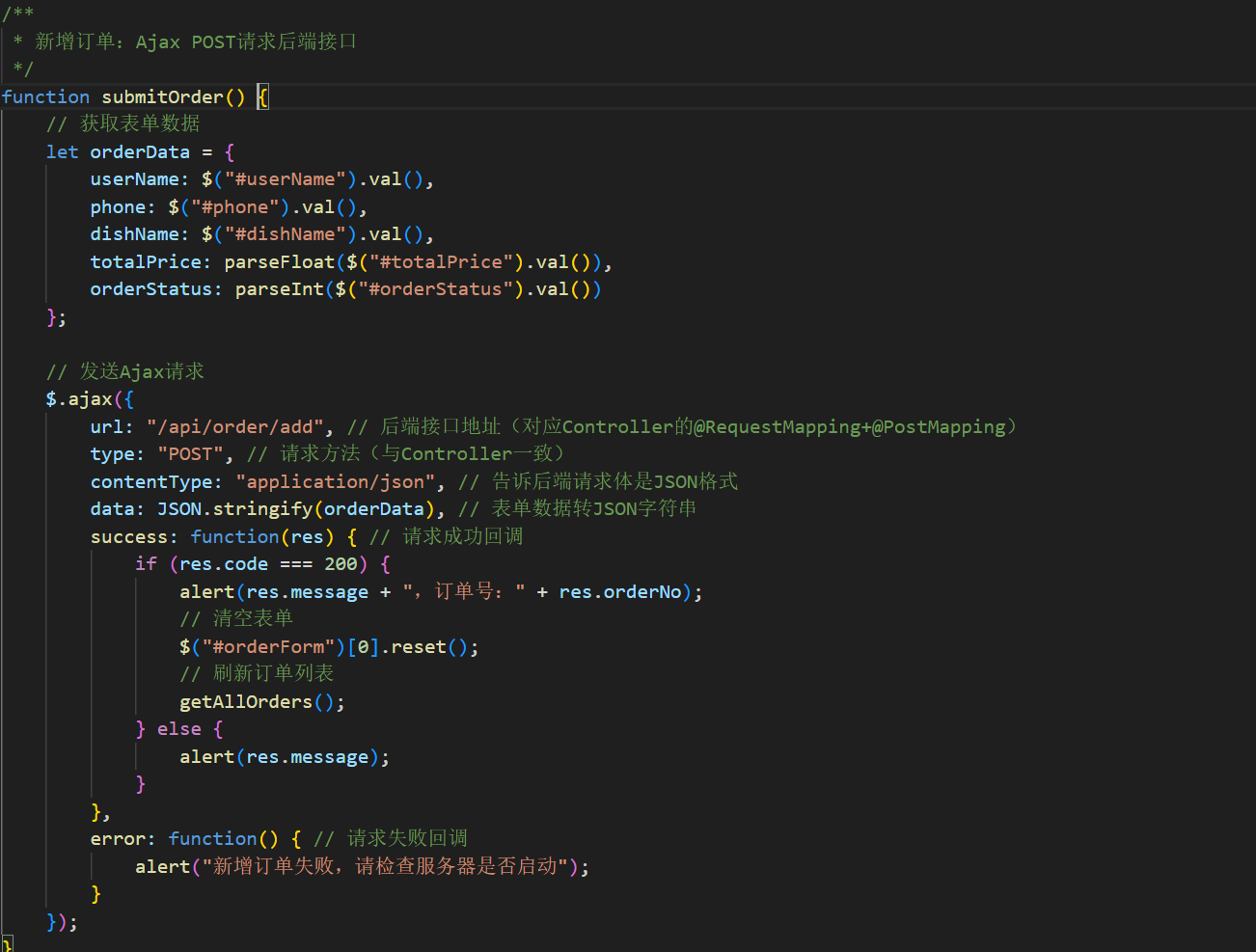 data: JSON.stringify(orderData), // 把用户信息转成JSON字符串(比如 {"userName":"张三",...})