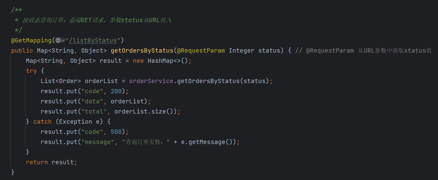 3.查询特定状态的订单:前端GET请求