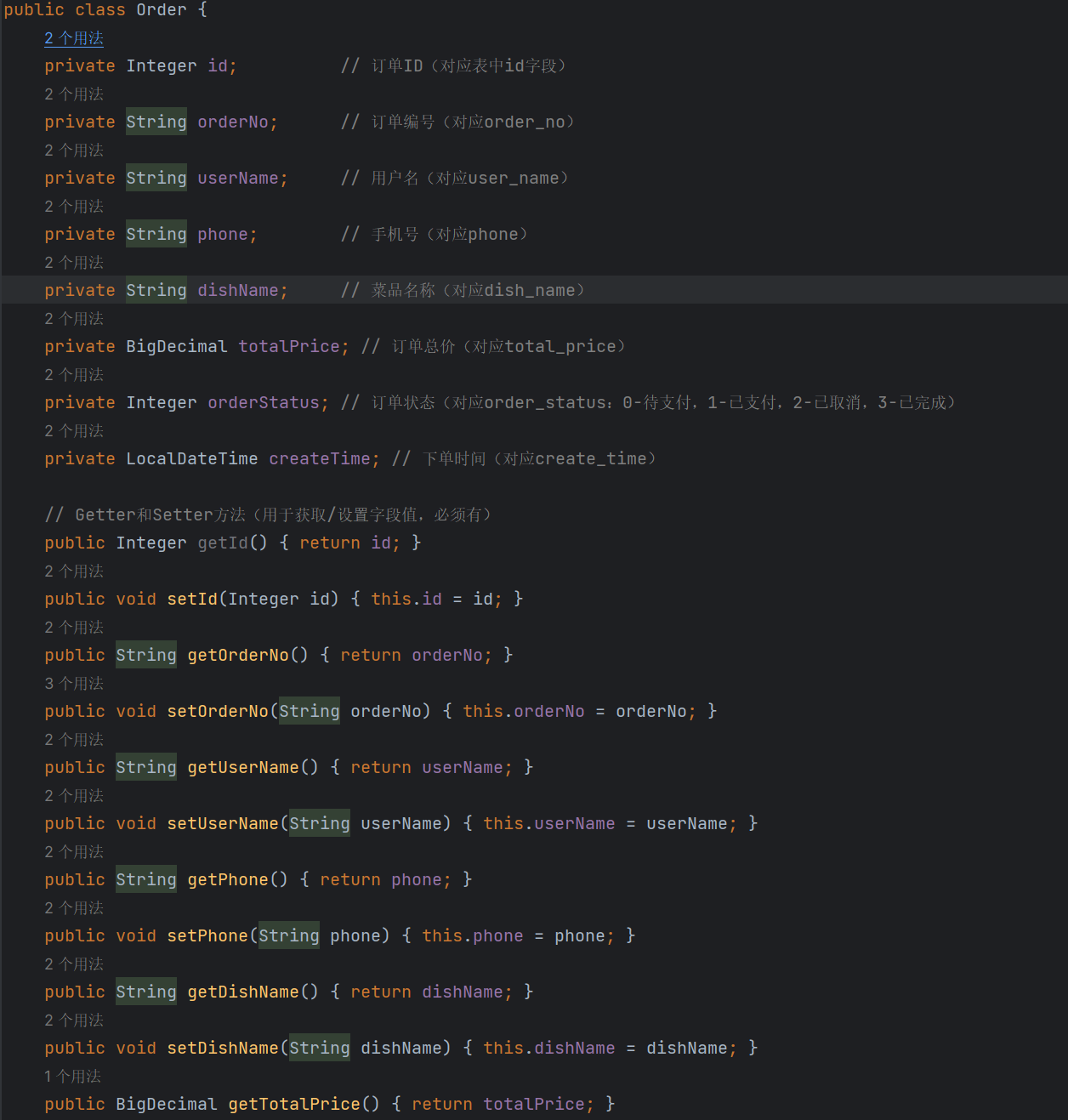 新建一个Order类,里面初始化我们后面需要用到的数据