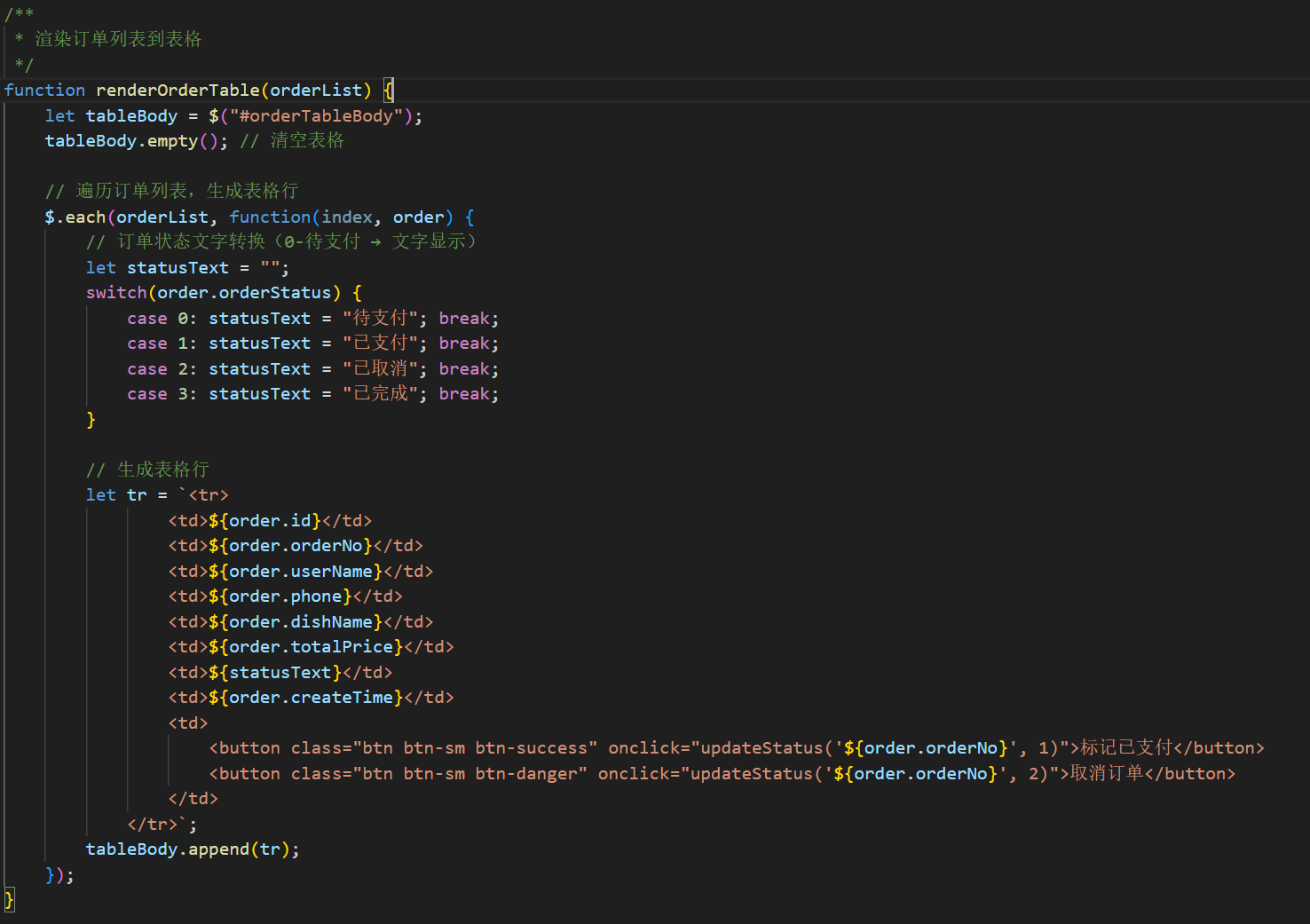 最后是渲染订单的函数