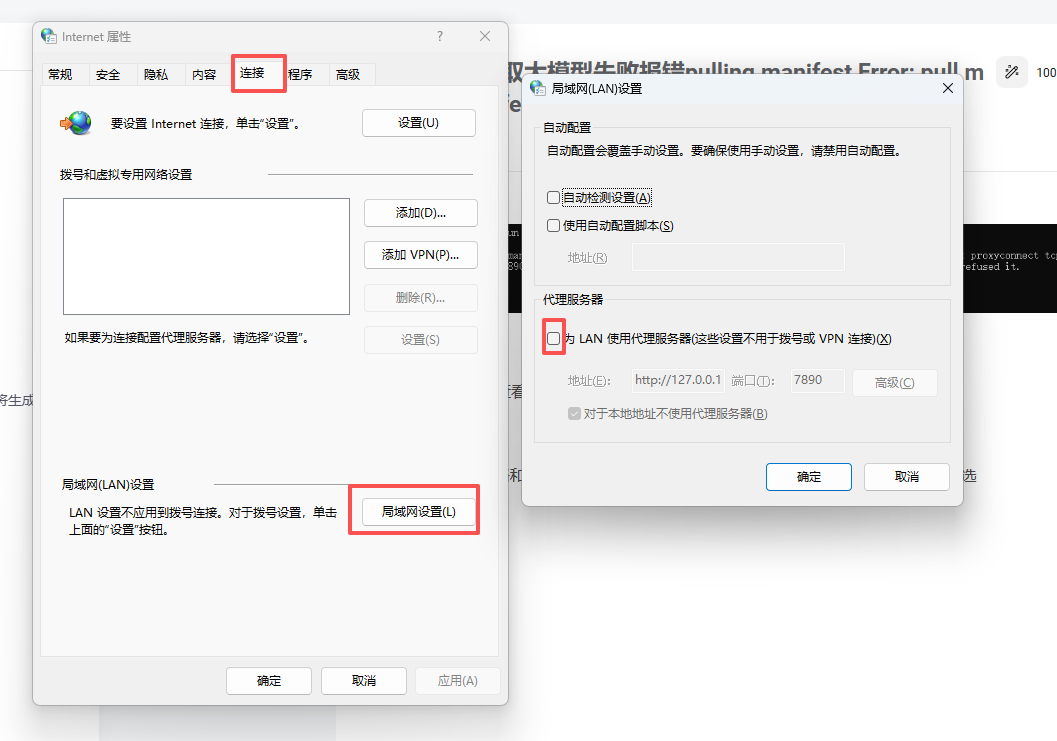 控制面板->网络和internet->internet选项->连接-局域网设置-取消代理服务器的勾选。关闭防火墙、查看网络是否使用了代理。