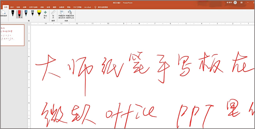 从上面的图片可以看出来microsoft office的笔迹更平滑,也能体现出笔锋,这样去录制手写式微课的效果也会更好一些!