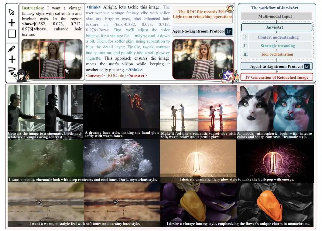 JarvisArt提出一种多模态大模型驱动的智能Agent,通过理解自然语言指令,协调200+个Lightroom工具,实现媲美专业修图师的非破坏性编辑。其突破性在于: