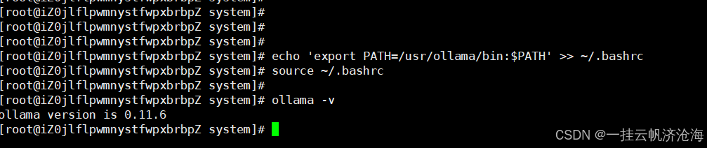 echo 'export PATH=/usr/ollama/bin:$PATH' >> ~/.bashrc