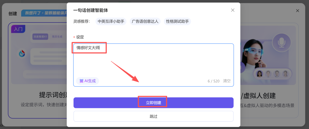 ②点击提示词创建