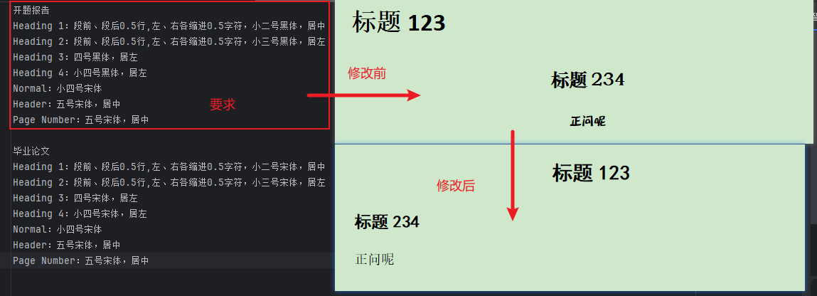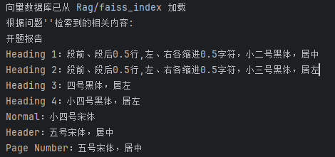 上面是简单的论文格式的知识库,开题报告、毕业论文的两个格式要求,以空行为分割,结果是list[str]列表,格式如['开题报告\nHeading 1:......','毕业论文....']