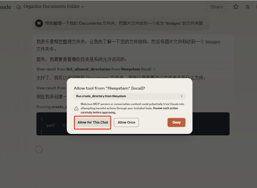🎉 大功告成! 现在你可以让 Claude 帮你整理文件试试看了! 例如: