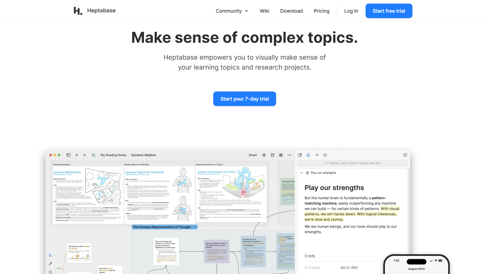 Heptabase 适合习惯用图形和空间关系梳理复杂信息的视觉型思考者、需要深度阅读文献并构建理论框架的研究者与学者,以及处理高关联度跨领域信息(如产品架构、战略规划)的复杂知识构建者。