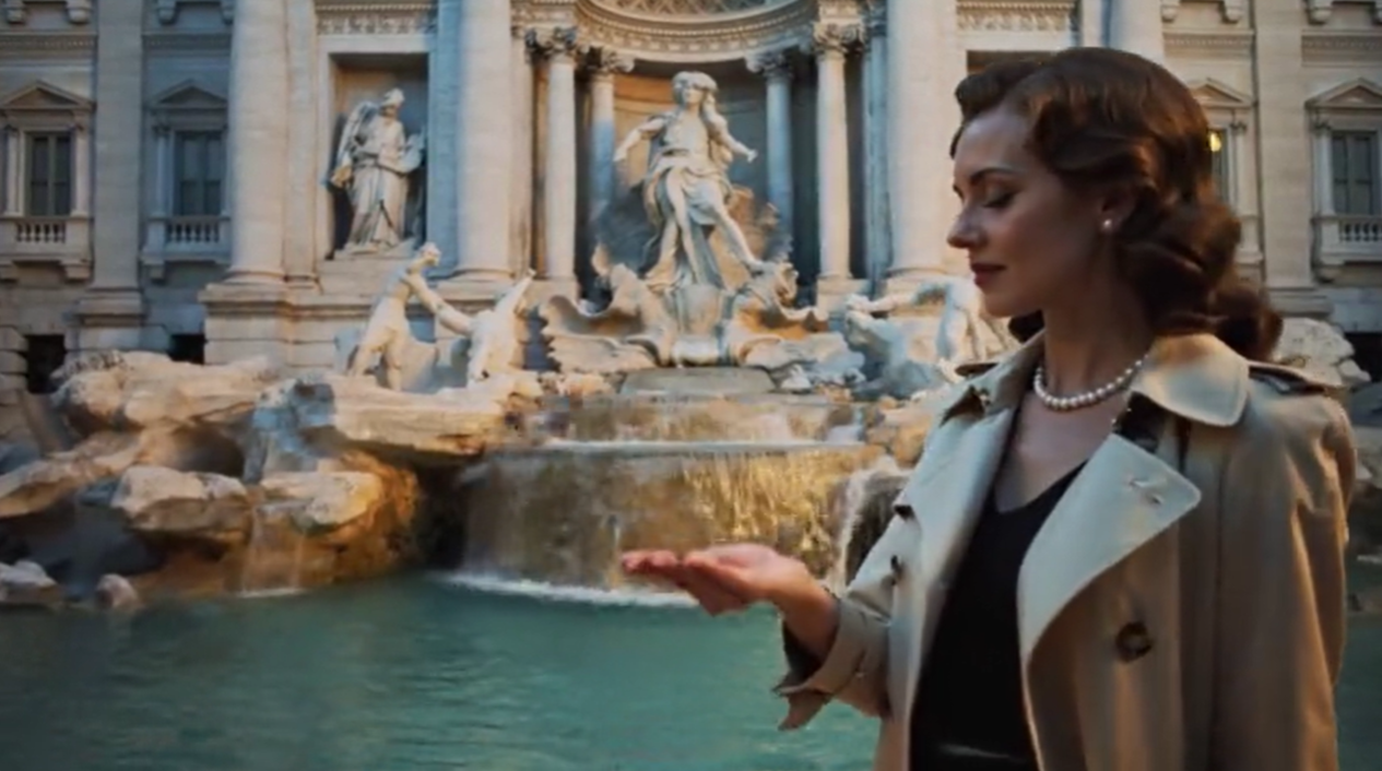Prompt11:奥黛丽赫本在罗马的特雷维喷泉旁许愿。