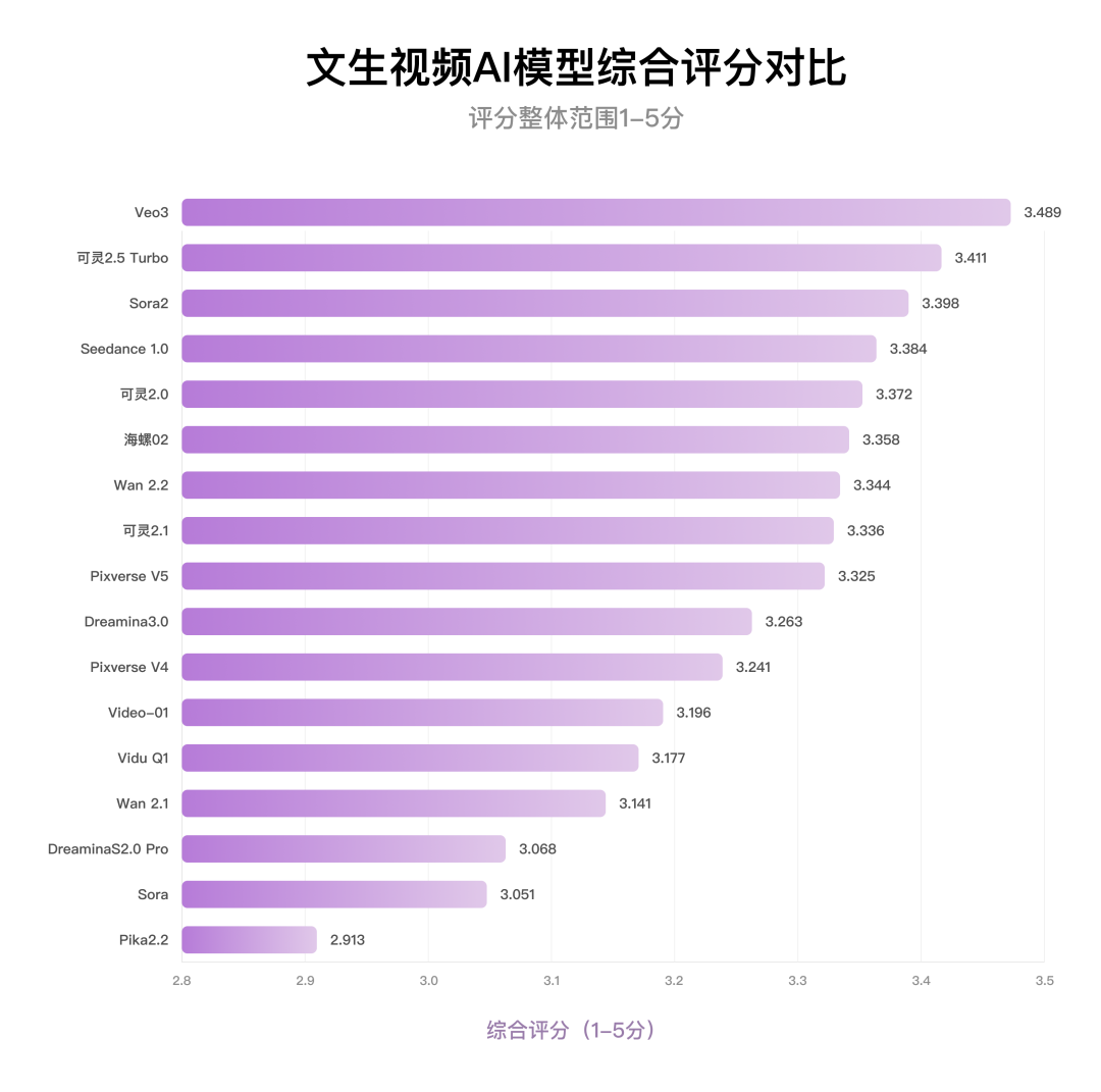 评测结果显示,国产AI模型可灵2.5 Turbo与海外AI模型Veo3领跑, Seedance 1.0 、可灵 2.0 被反超。