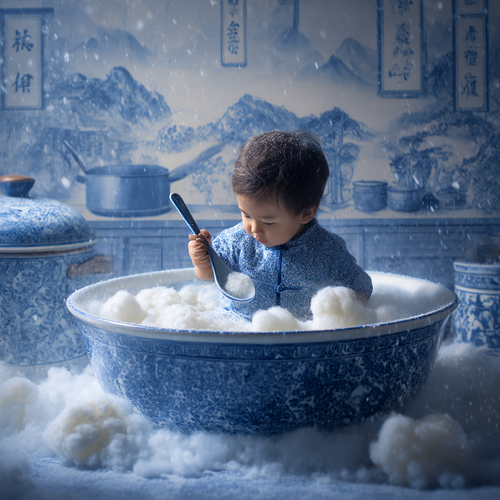 基础设定:4-6岁的人类幼崽,天然卷短发配星星发卡,穿着小熊连体睡衣,怀里总抱着褪色的布偶兔。语言能力处于“能流畅表达但逻辑清奇”的阶段,认知世界充满童话滤镜。