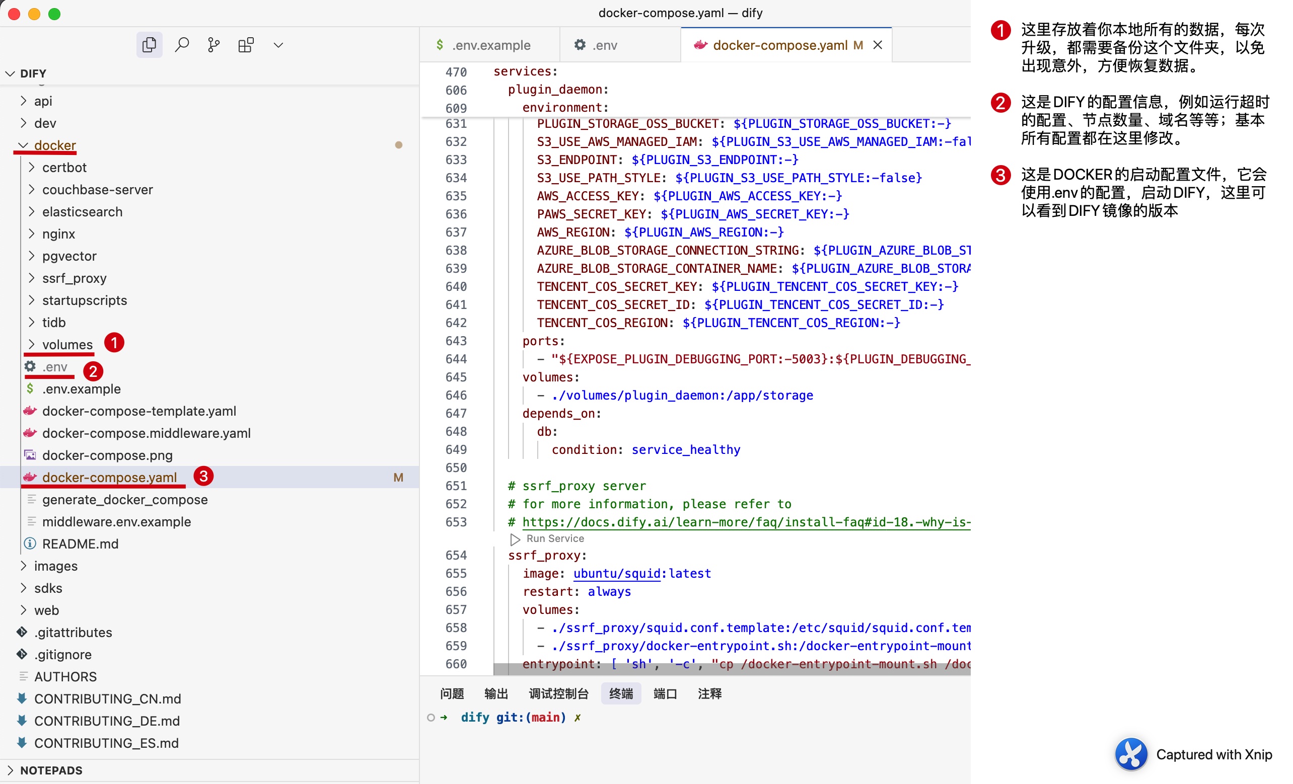 cd dify cd docker cp .env.example .env docker compose up -d |