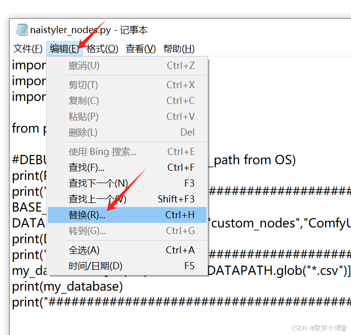编辑,替换。