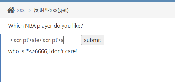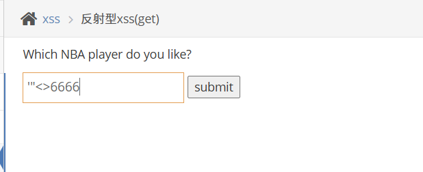 拿到题目,让我们submit一个喜欢的NBA球员,现在我们的目的是执行XSS攻击,我们可以先尝试输入单双引号和左右尖括号去看看我们构造的payload是否会被过滤掉。