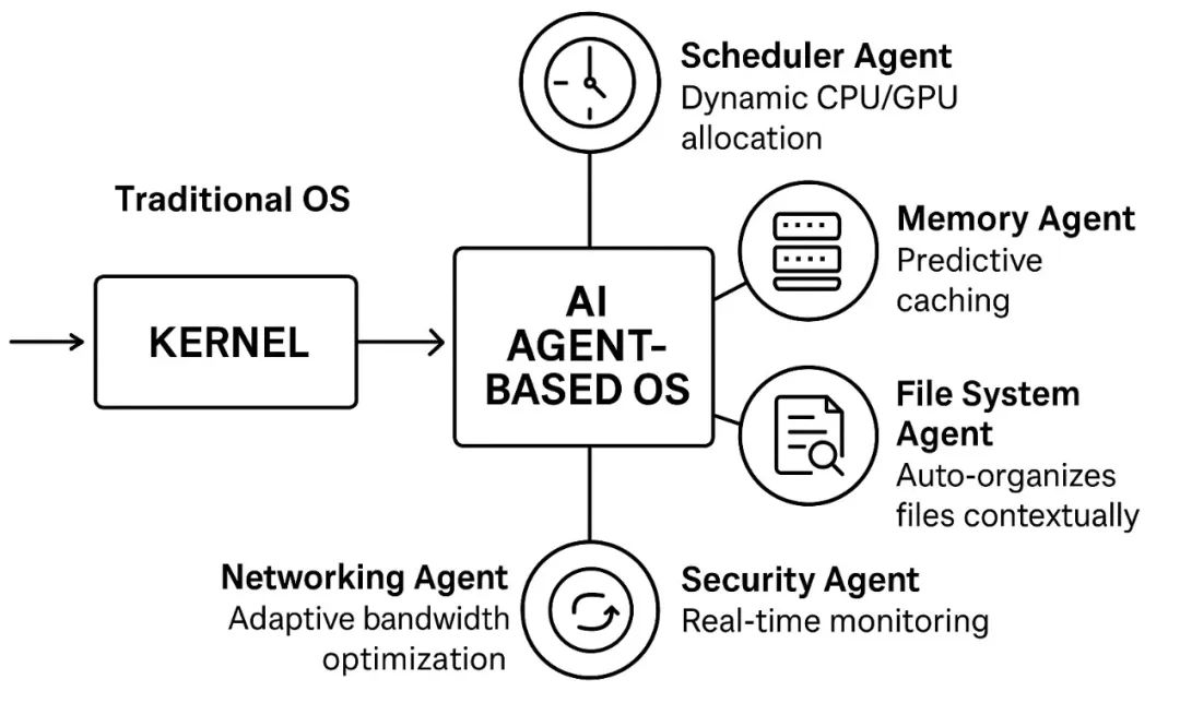 AI 操作系统的核心是其 AI 内核,它不仅仅是像 Linux 或 Windows 那样的 CPU 周期和内存分配的交通警察,而是推理的首席指挥官。它不只是说“运行这个程序”,而是说“运行这个思维链,引入合适的模型,并使它们协同工作”。