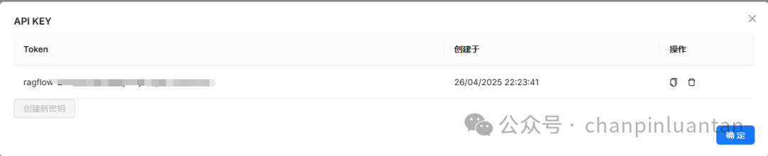 (3)API Key:打开RAGFlow-API-创建APIKey