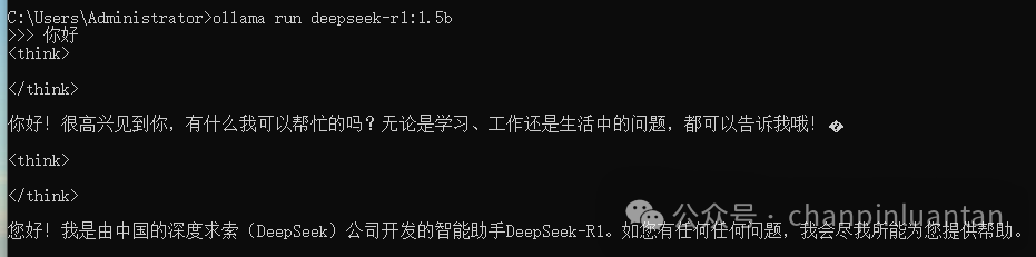 输入ollama run deepseek-r1:1.5b