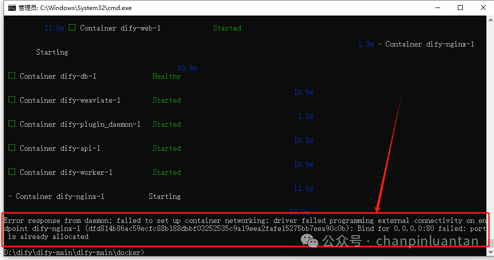 若Dify和RAGFlow在同一主机安装,则会出现端口被占用的情况(80端口被RAGFlow占用),需要提前修改端口。
